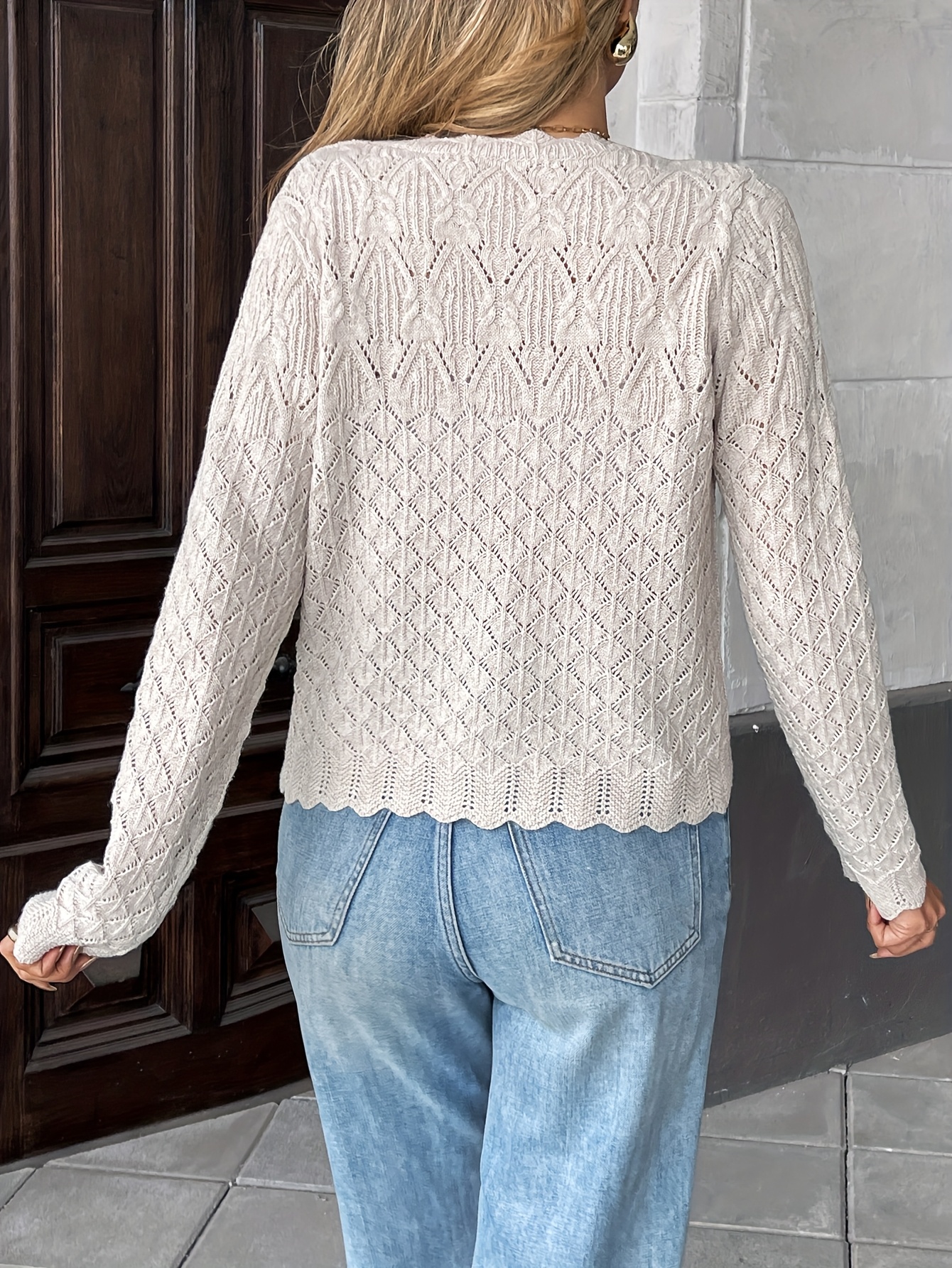 Elegant Women'S Cardigan - Long Sleeve, Round Neck, Button-Up with Eyelet Details, Solid Color, Perfect for Fall/Winter, Stylish Layering Piece, Stylish Layering Piece|Elegant Knitwear|Buttonup Closure
