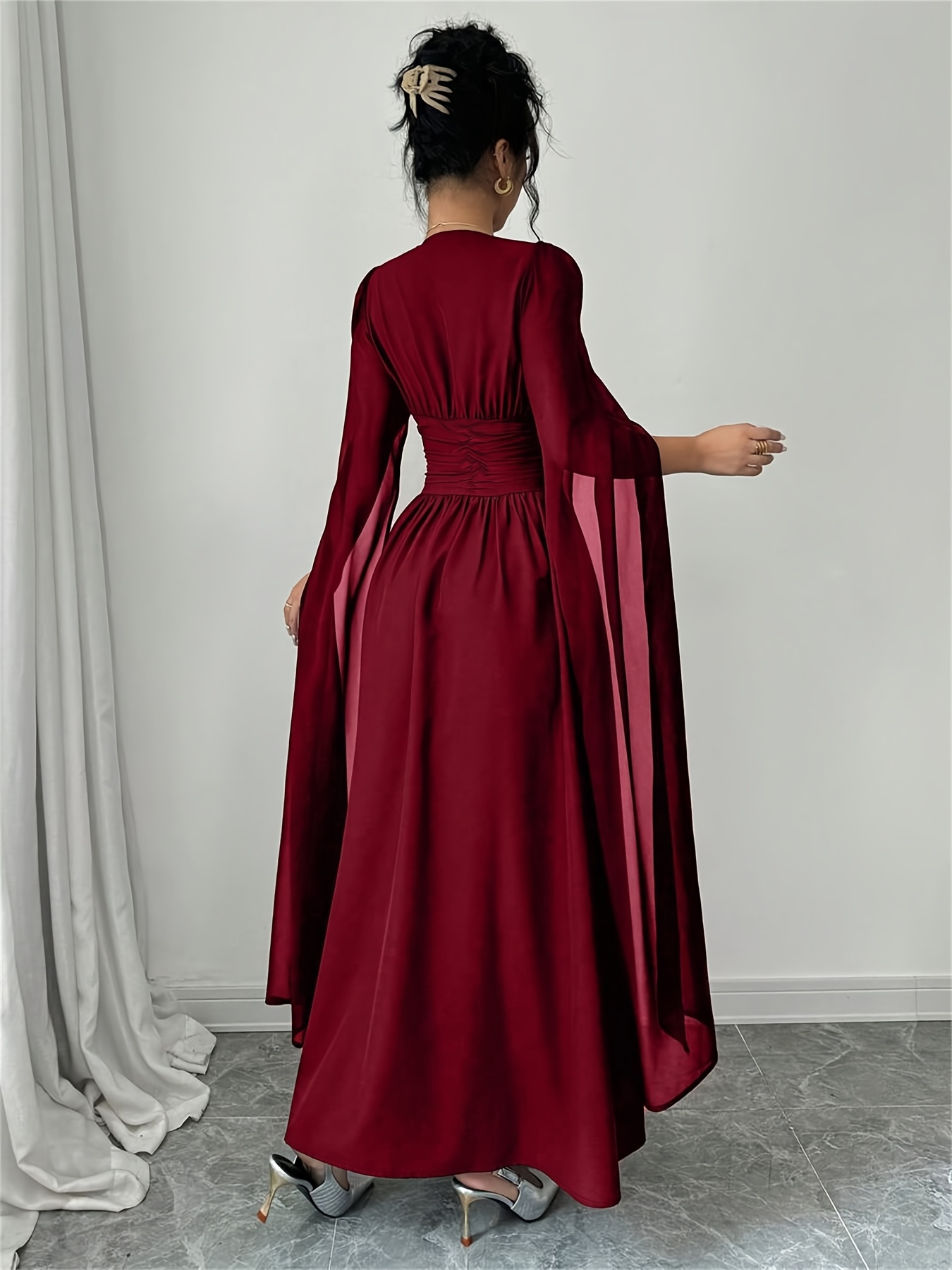 Women'S Elegant V-Neck Maxi Dress with Pearl Accents - Long Formal Party Wedding Guest Dress, Flattering Fit for Summer Events, Formal Events, Parties, Wedding Guest Attire, Vneck Design, Flowy Fabric