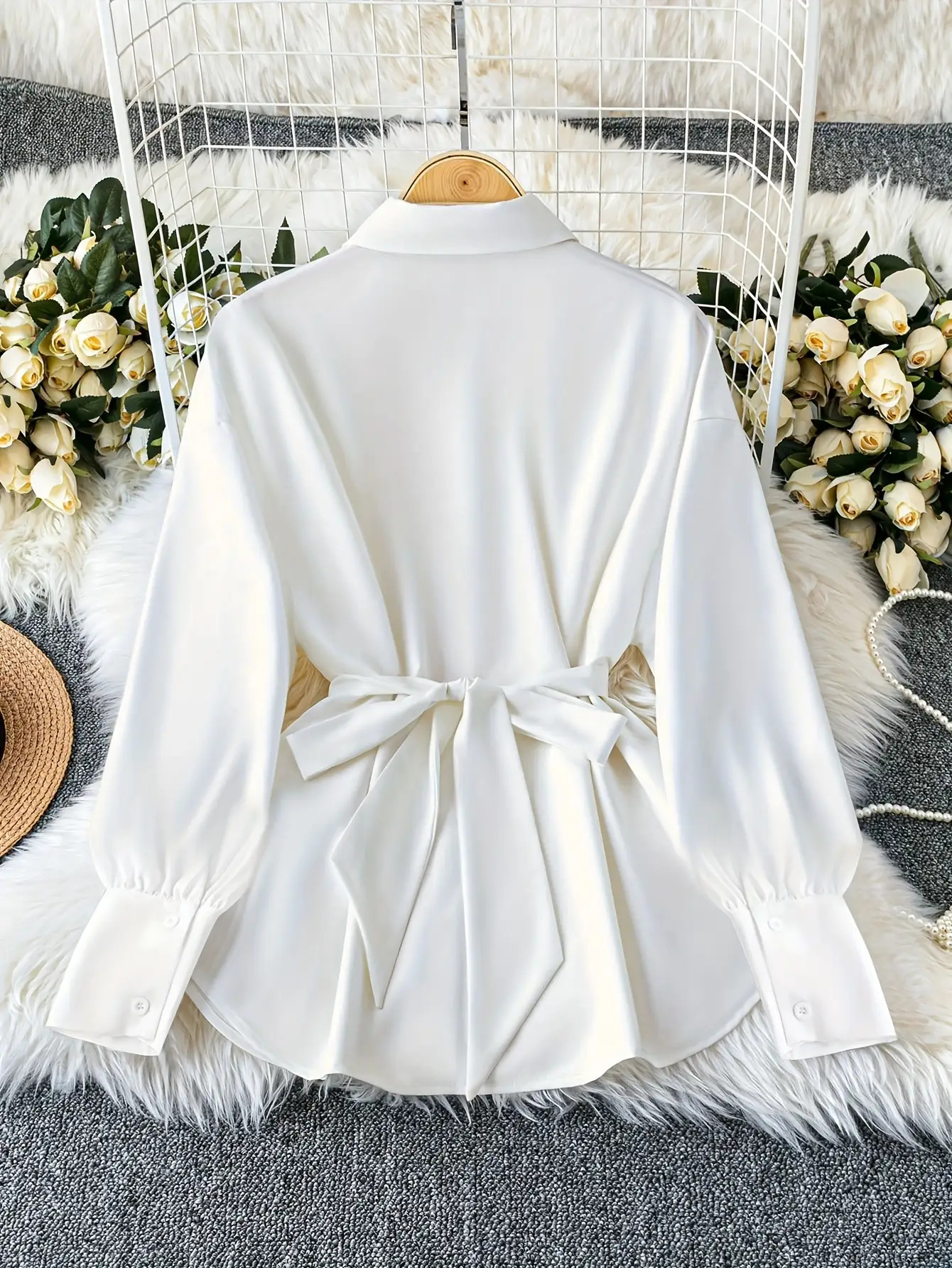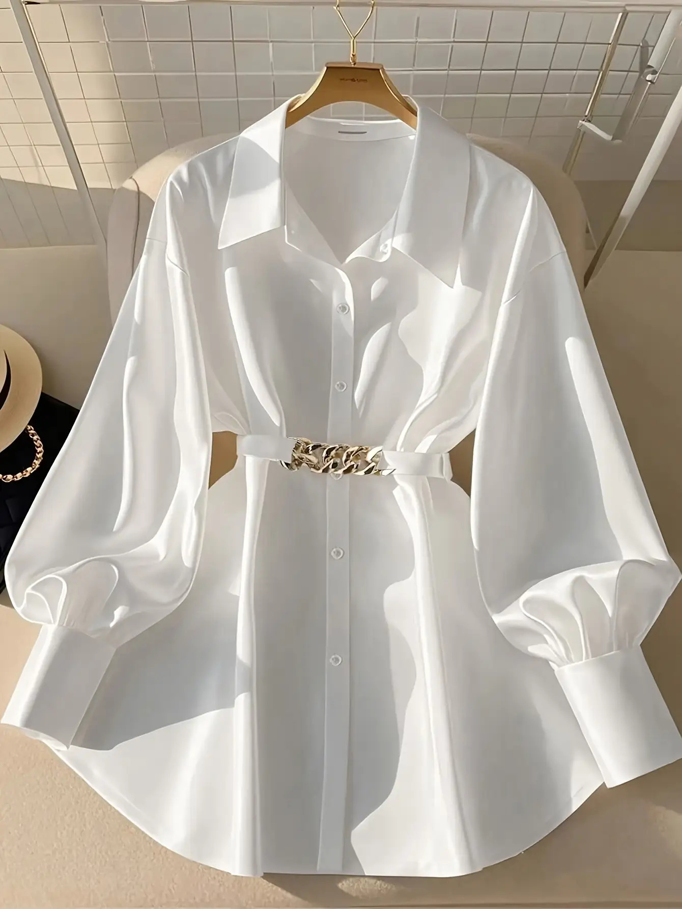Plus Size - Plus Size, Women'S Plus Size Elegant Long Sleeve Button-Up Shirt - Non-Stretchy Formal & Casual Blouse, Machine Washable Office & Everyday Tops for Women, Classic Collar Button Front Placket, All-Season Professional & Everyday Blouse, Versatile Top, Sophisticated Design, Durable Material, Stylish Top, Fashion Lovers