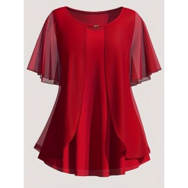 Plus Size Multicolor Women's Fake Two-piece Chiffon Summer Top