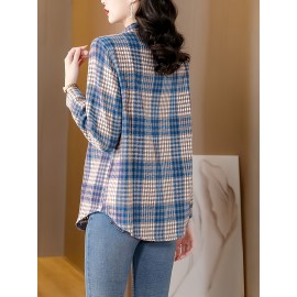 Plus Size - Women'S Plus Size Oversized Plaid Flannel Shirt - Elegant Long Sleeve Button-Up with Checkered Pattern, Non-Stretch Fabric, Classic Collar, Versatile Fall/Winter Casual Top, Autumn Winter Apparel | Elegant Casualwear | Nonstretch Material
