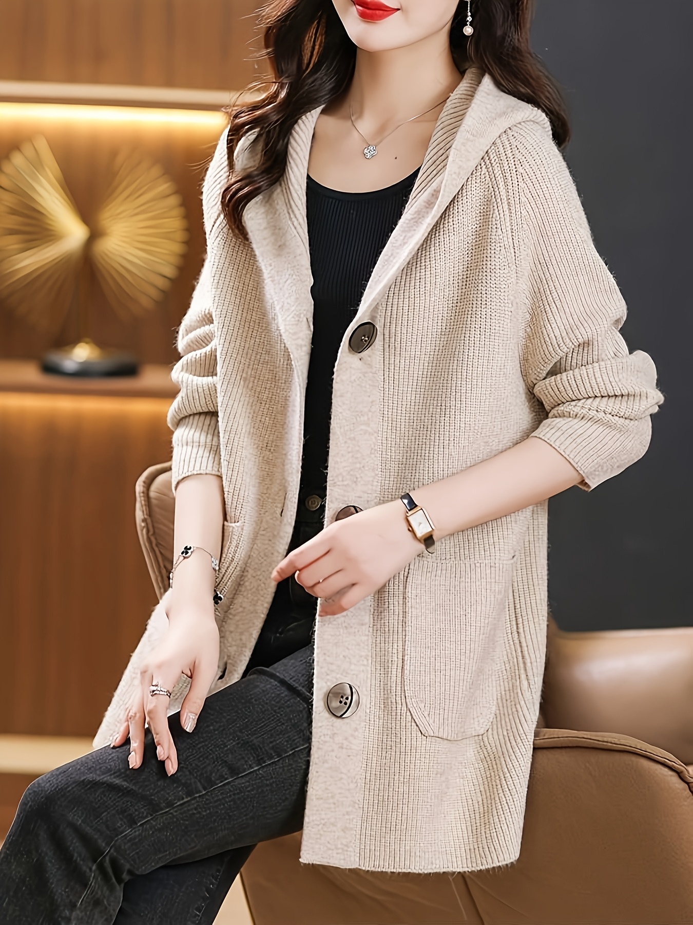 Women's Beige Cardigan Sweater - Longline Open Front Coat-like Jacket, Soft Chic Sweater for Fall/Winter, Elegant Everyday & Formal Outfits, Fall Winter Wear, Soft Texture