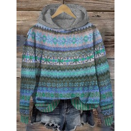 Women'S Elegant Hooded Sweatshirt - & Teal Color Block Pullover with Snowflake Pattern, Cozy Winter Sweater for Everyday & Formal Outfits