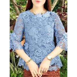 Material:PolyesterComposition:100% PolyesterStyle:ElegantOperation Instruction:Machine wash or professional dry cleanSeason:Spring/FallType:TopsFabric:Non-StretchSheer:Semi-SheerPattern:Solid colorDetails:Contrast LacePrinting Type:No PrintingWeaving Method:Knit FabricCollar Style:Crew NeckBrand:ZANZEAItem ID:CF7255465Origin:Guangdong,China..
