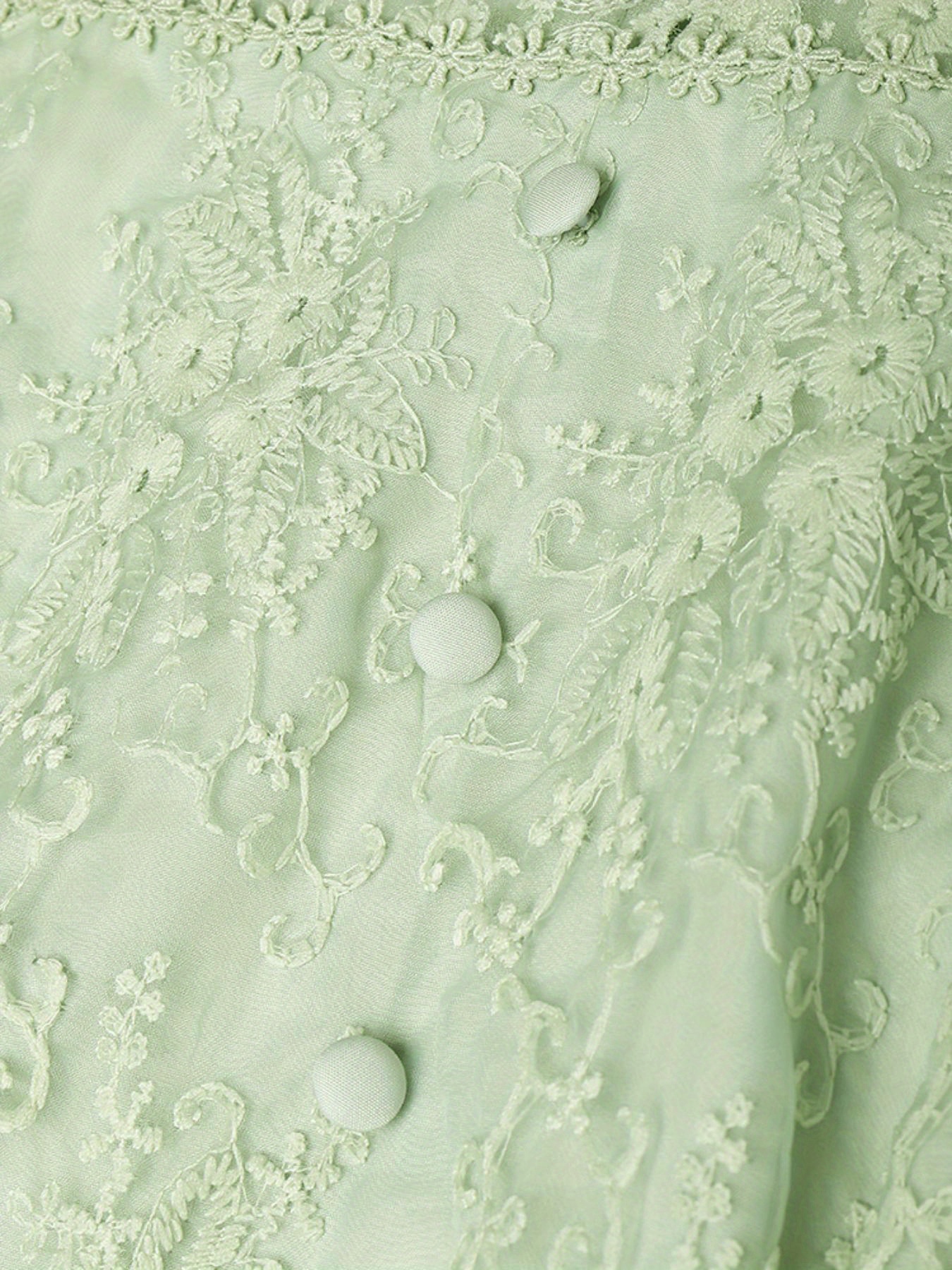 [Wedding & Party] Plus Size, ZANZEA Women's Plus Size Elegant Lace Patchwork Blouse - 3/4 Sleeve Wedding & Party Shirt with Front Button Closure, /Korean Inspired A-Line Lightweight Top, Machine Washable Golden Lace Jacket-like Blouse for Year-Round