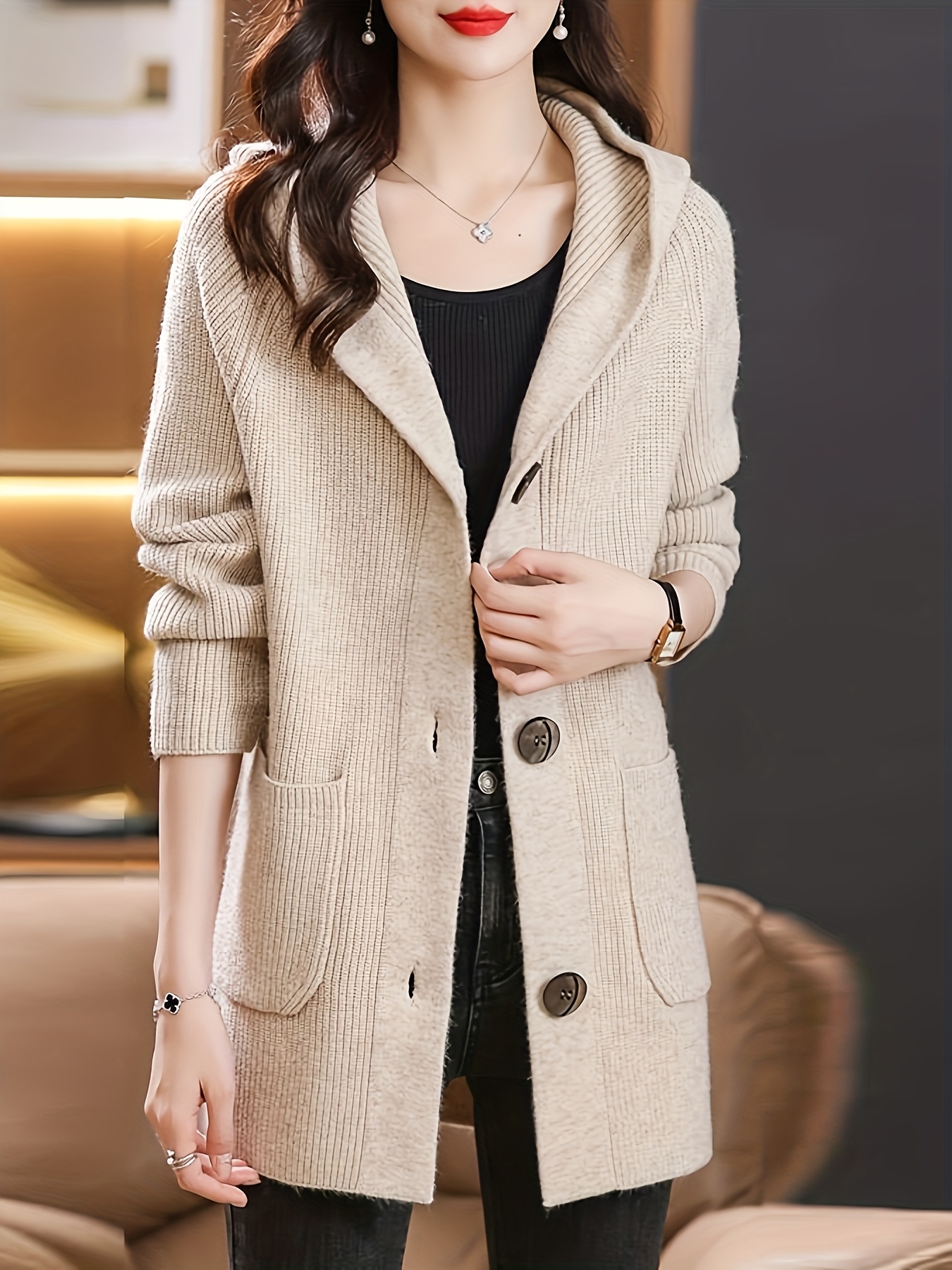 Women's Beige Cardigan Sweater - Longline Open Front Coat-like Jacket, Soft Chic Sweater for Fall/Winter, Elegant Everyday & Formal Outfits, Fall Winter Wear, Soft Texture