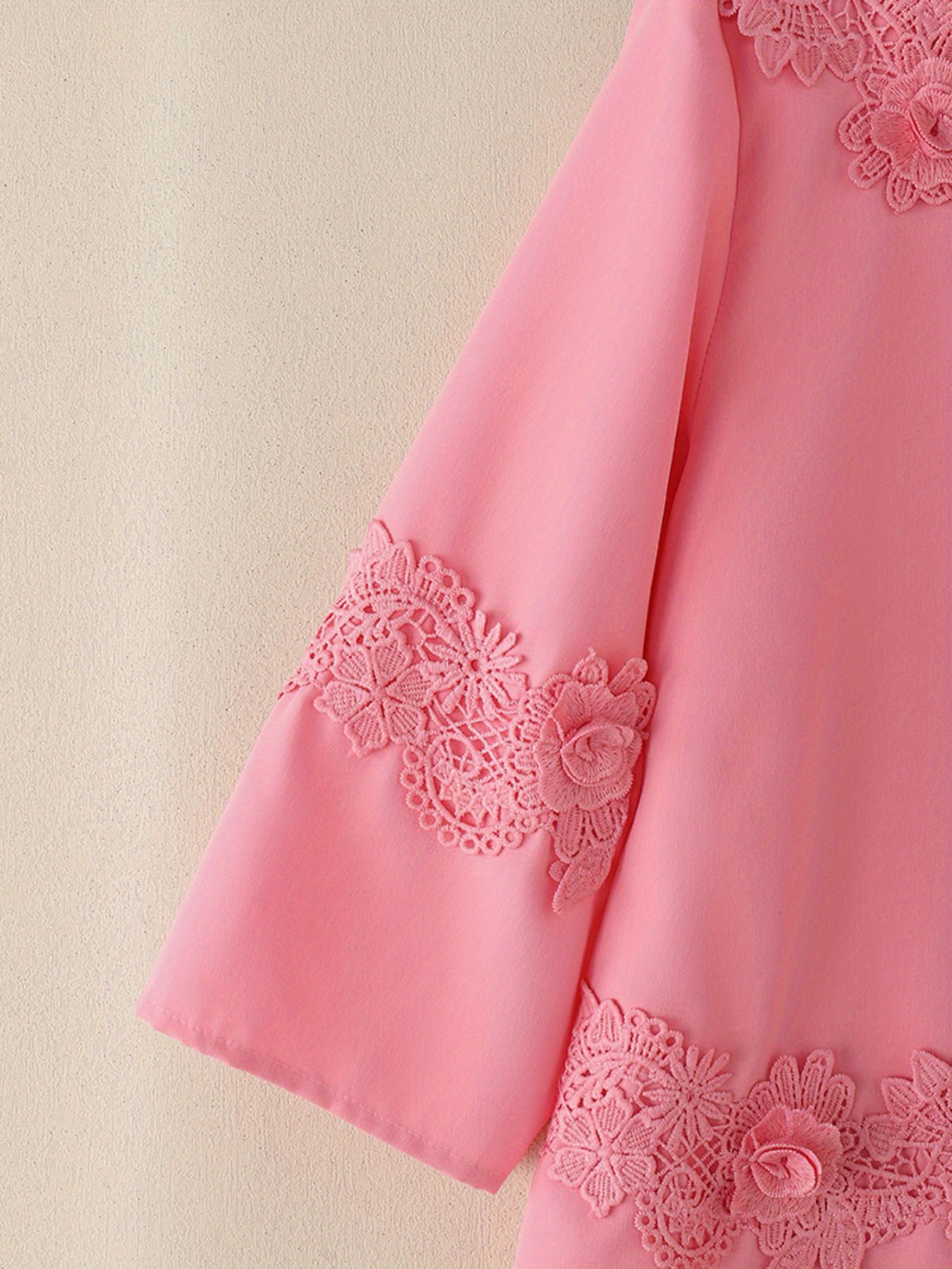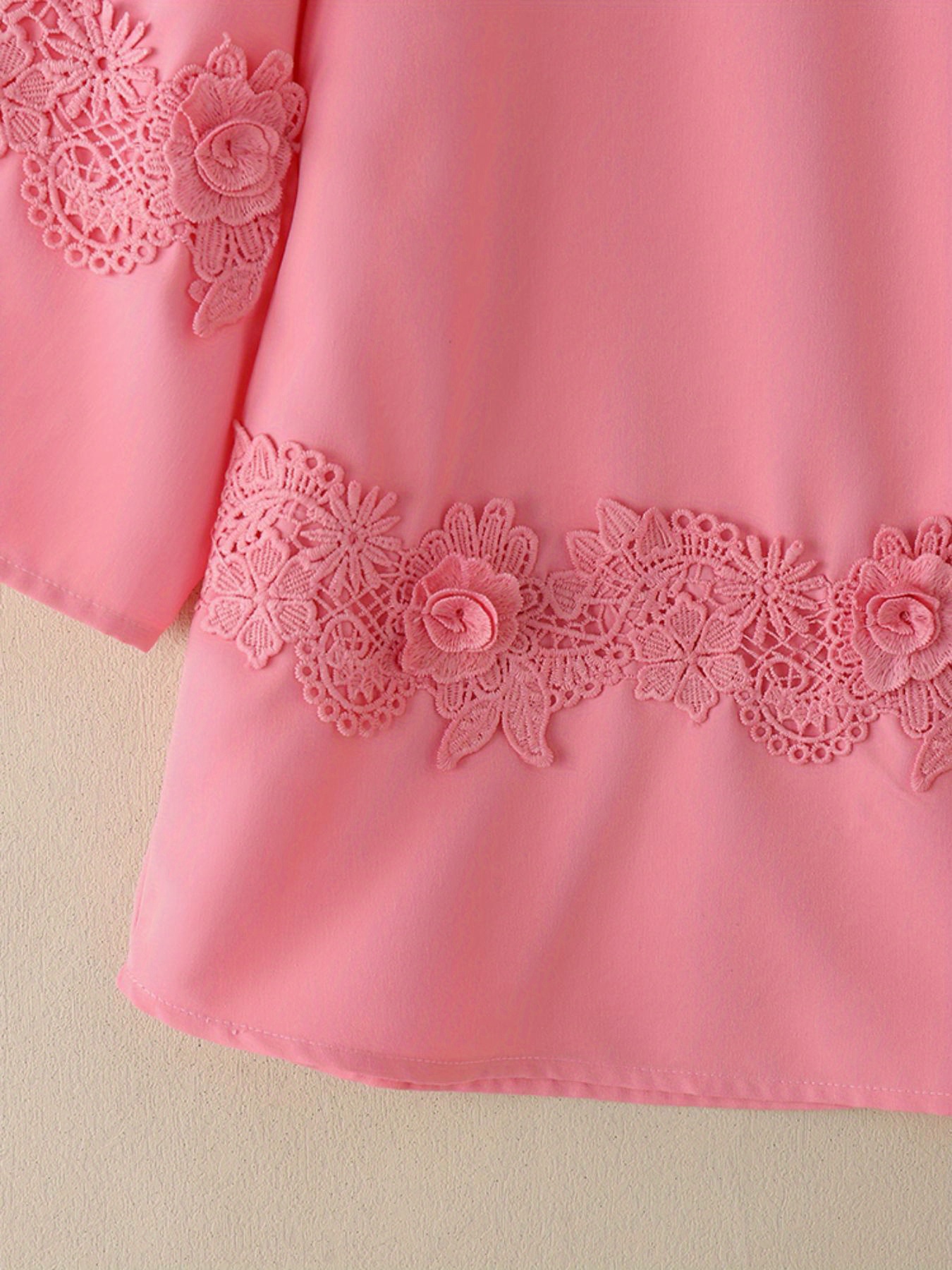 Plus Size, ZANZEA Women's Plus Size Elegant Blouse - 3/4 Sleeve Crew Neck Baggy Shirt, Lightweight All-Season Wedding Guest Dress-like Top, Machine Washable White Collar Blouse for Office, Party & Casual Attire (Plus Size Friendly)