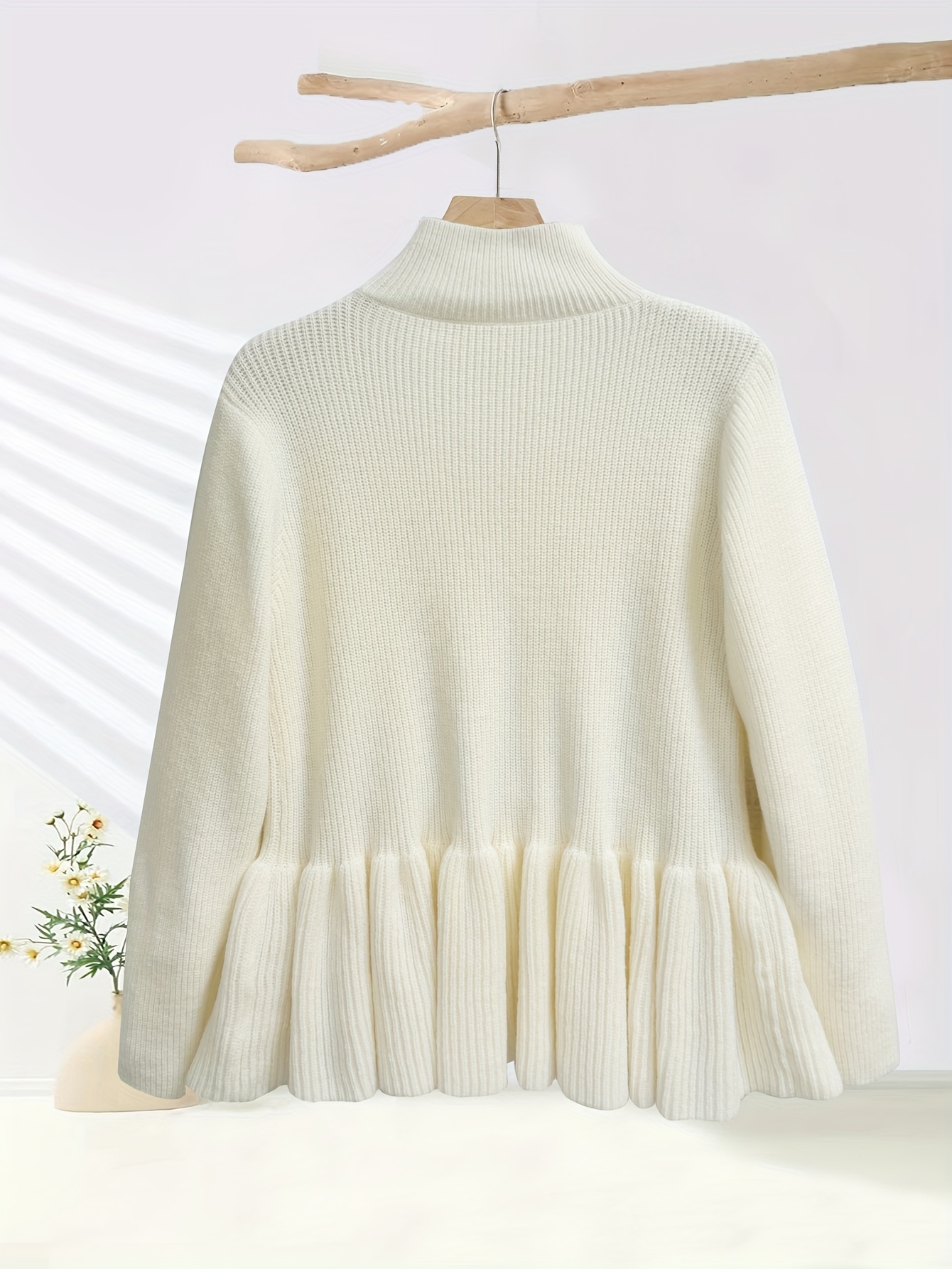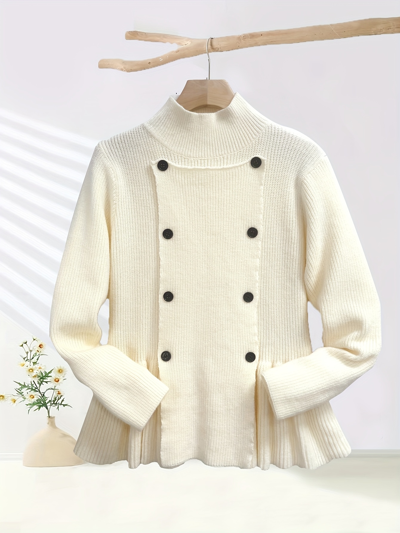 Women'S Elegant High Neck Long Sleeve Sweater - Winter Coat-like Top with Button Front, Stretchy Fabric, Long Sleeve Pullover for Fall/Winter, Everyday & Formal Outfits - Women'S Sweater, Sweater, Fall Fashion, Office Wear, Stylish Knitwear