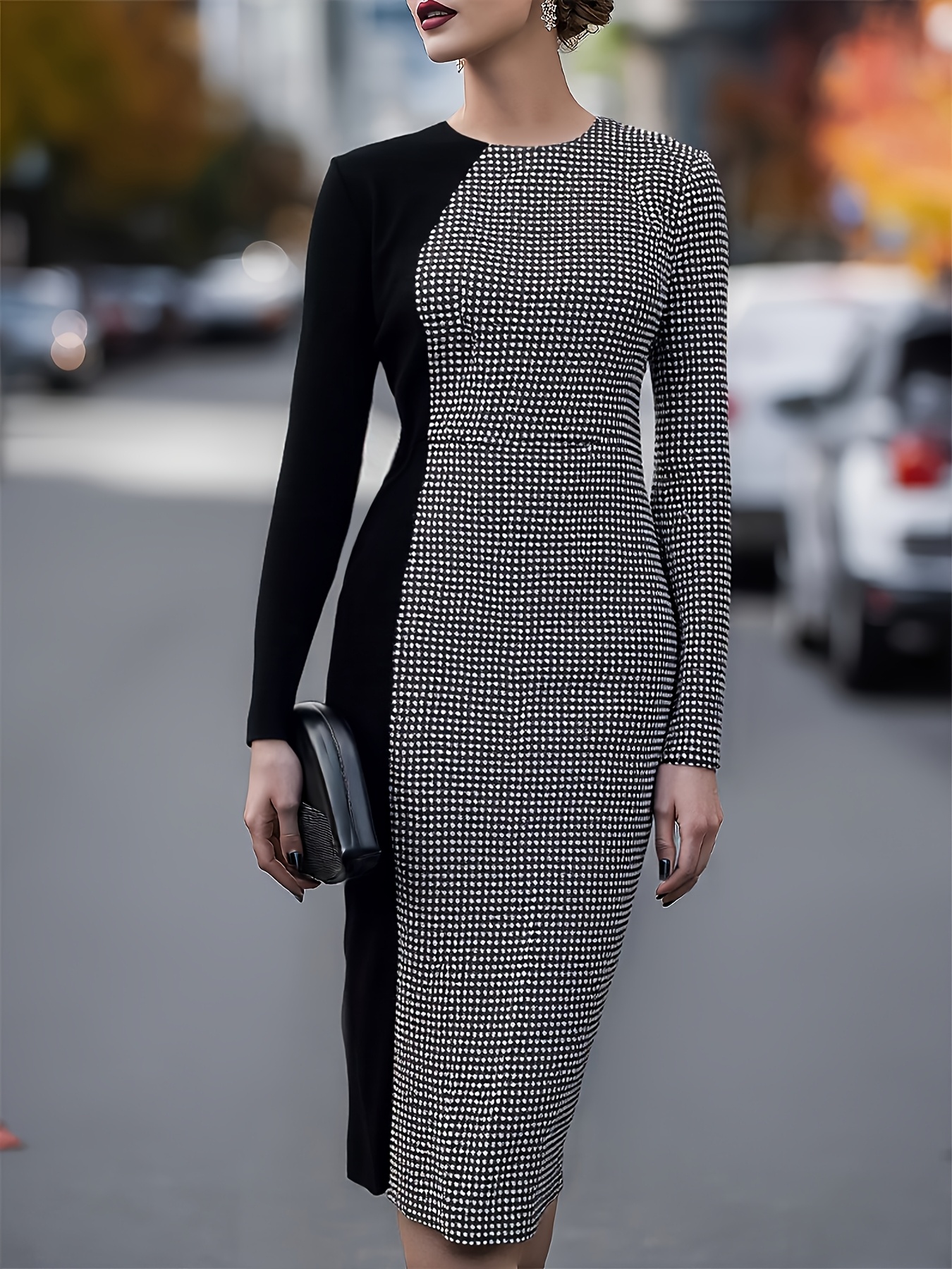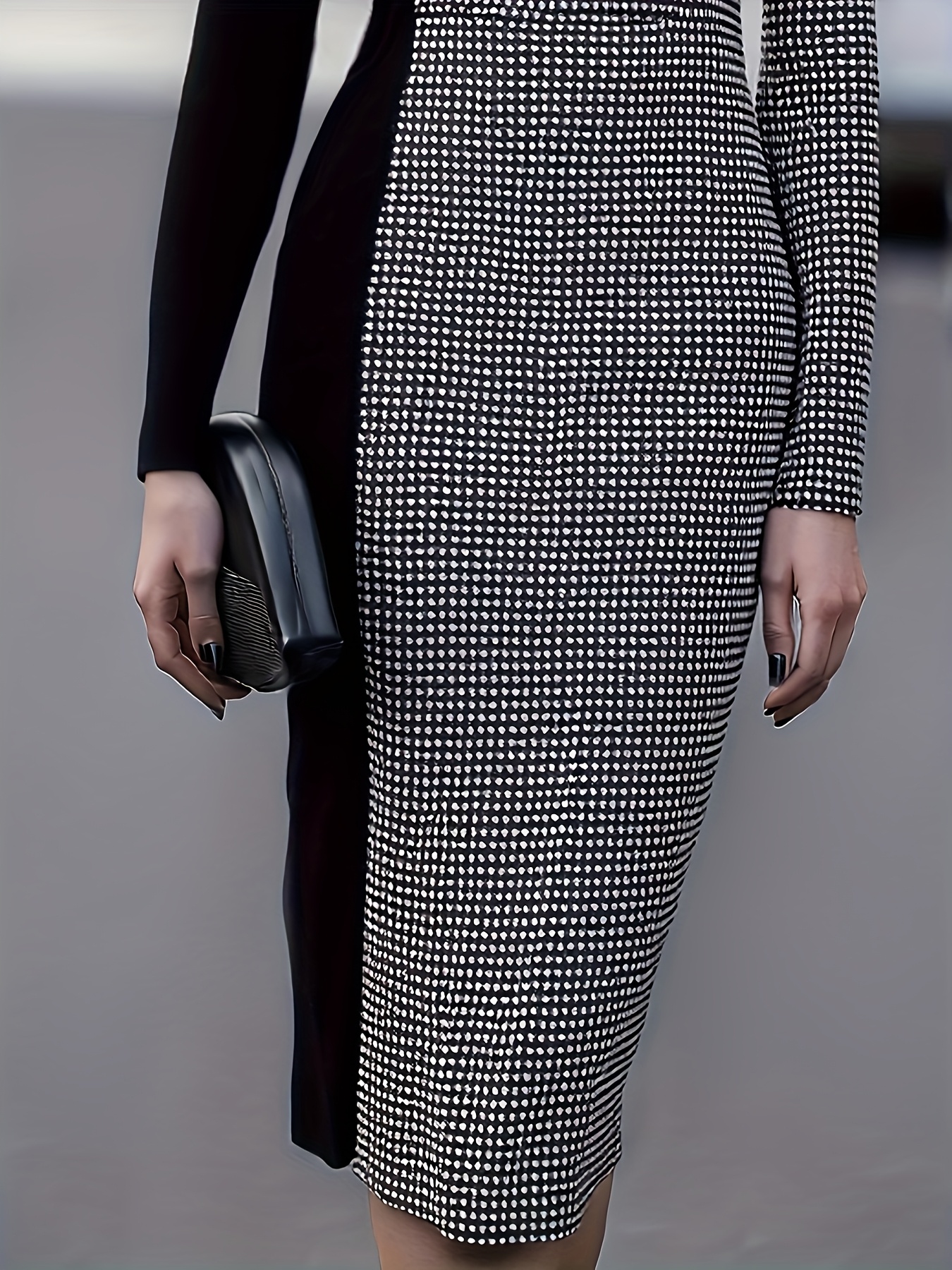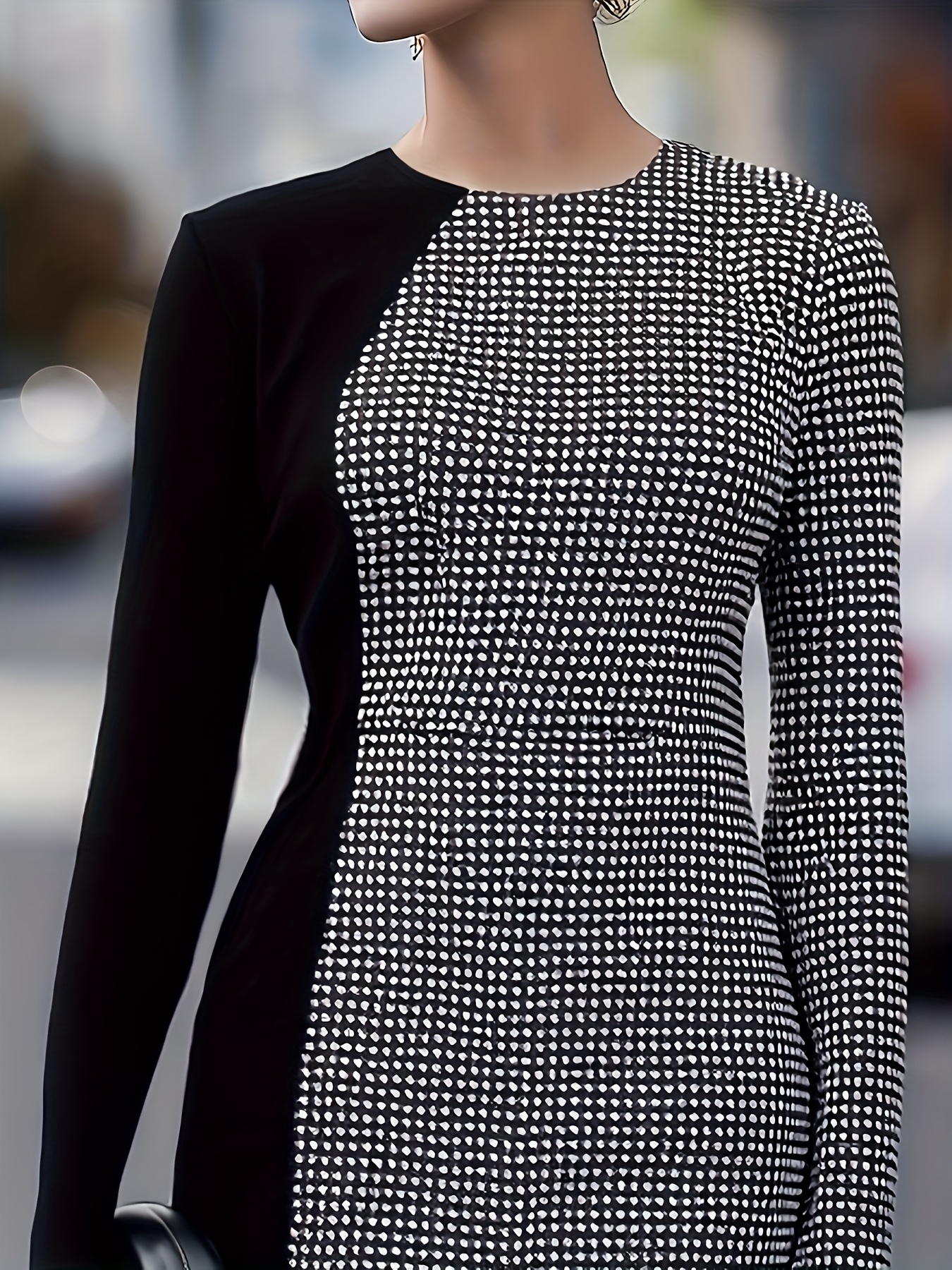 Women'S Elegant Long Sleeve Dress - & Checkered Pattern, Zipper Closure, Formal & Everyday Chic Outfit, Machine Washable Non-Stretch Fabric for Women, All-Season Versatile Party Wedding Office Dress, Dresses for Wedding Guest