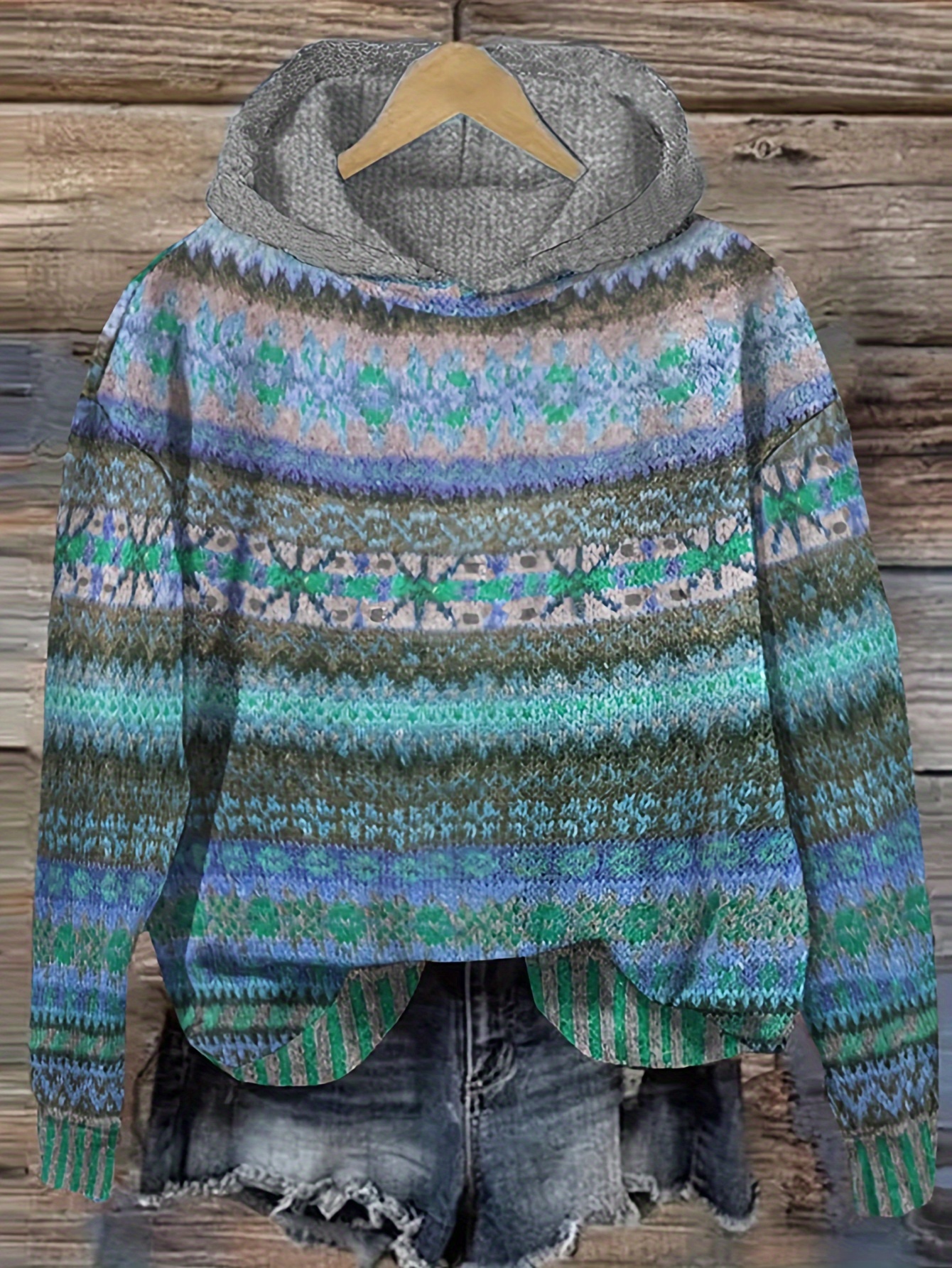 Winter Women's Elegant Hooded Sweatshirt Style Soft Jacquard Gradient Multicolor Beautiful Fashion Comfortable Casual Vintage Pullover Commuter Gift
